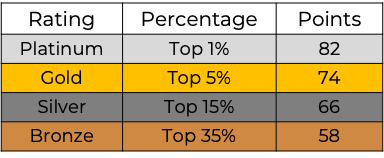 An EcoVadis Bronze, Silver, Gold or Platinum medal is awarded depending on your ranking against all other companies with EcoVadis Scores.